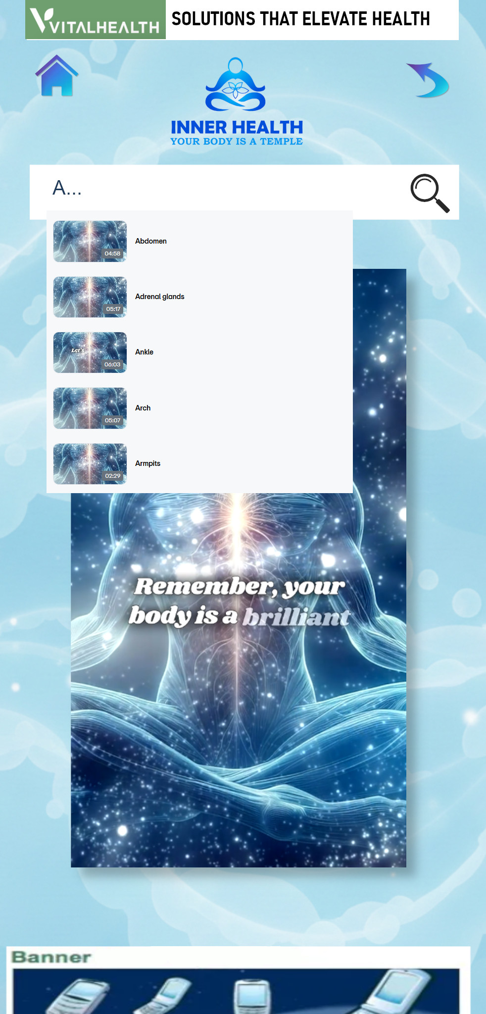 Home / apps / Inner Health – Your Body Is A Temple Inner Health – Your Body Is A Temple Coming soon to the App Store! (iPhone users, don’t worry! We’ll let you know as soon as it’s ready for you!) Stay informed about our app launch! Subscribe to our newsletter for updates and be the first to know when it’s ready. Are you truly listening to your body? It whispers secrets about your well-being, offering profound insights into your mind, body, and spirit. Every ache, every discomfort, every subtle sensation is a message waiting to be decoded. What if you could understand these messages, unlocking the potential to transform your life’s course? We believe in the power of inner wisdom. We encourage you to explore the spiritual connection between your body parts, illnesses, and pain. By tuning in to these subtle signals, you can gain a deeper understanding of yourself and pave the way for profound healing and positive change. Download the Inner Health App and start decoding your Body Messages. Your journey to wellness begins here. Ready to delve deeper? Introducing the revolutionary Vital Health Advanced Quantum Resonance Body Scanner AI! This cutting-edge technology offers a comprehensive body scan, providing you with invaluable information about your health on a quantum level. Imagine having access to a detailed blueprint of your energetic imbalances, nutritional deficiencies, and potential areas of concern. With this knowledge, you can take proactive steps to optimize your well-being and live a more vibrant, fulfilling life. Unsure where to start? We invite you to book a FREE consultation with our support team. During this consultation, you’ll receive personalized guidance and learn how the Vital Health Advanced Quantum Resonance Body Scanner AI can help you embark on a transformative health journey. Don’t wait another day to unlock the secrets your body holds. Book your FREE consultation now and take the first step towards a healthier, happier you! FREE Consultation Meeting Out of stock SKU: APP-0013-1 Category: apps Description Related products Open Up Wide (Phone Version) Psychic / Mediumship Masterclass Sacred Geometry Oracle Cards Atlantis Wisdom Oracle Cards Daily Inspirational Messages – FREE APP Animal Insight Oracle Cards